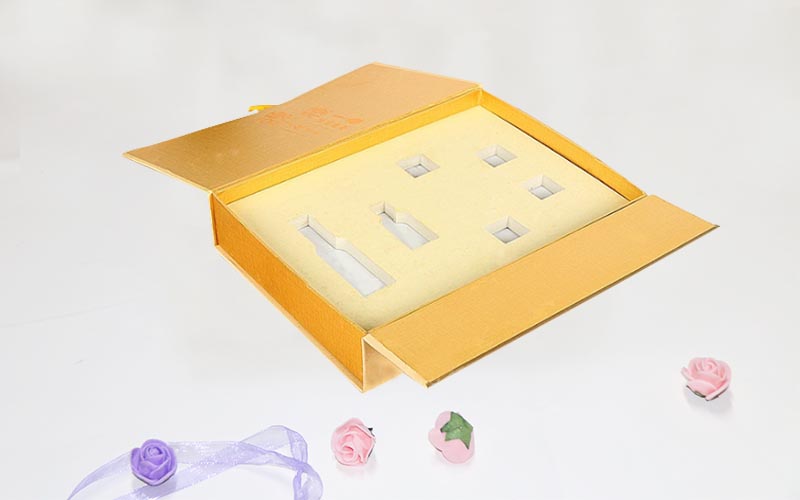 1.高端護膚品包裝盒定制-材質:包裝盒面紙採用麗紋特種紙,裱1600G雙灰闆,盒子是空白的,客戶要放文字LOGO都可以定制的,文字可以燙金擊凸,盒型是比較特殊的,這種盒子採用全套手工制作